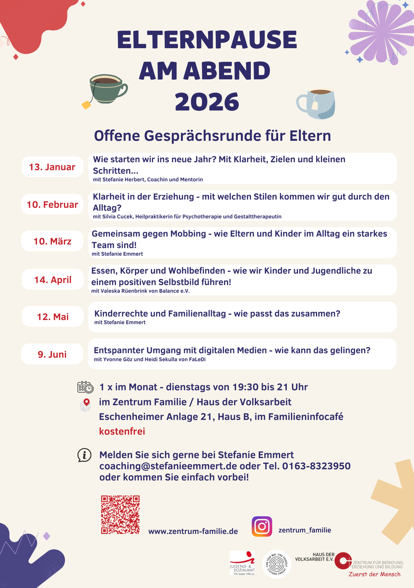 Klärung von Fragestellungen zu Erziehungsthemen - Mehr Freude als Familie - Stärkung der Erziehungskompetenz - Verbesserte Kommunikation im Umgang mit Herausforderungen - Strategien im Umgang mit Mobbing und Konflikten